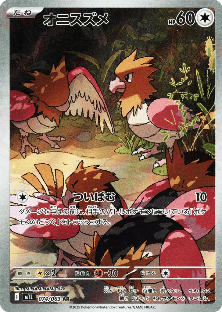 Types: ColorlessHP: 60Rarity: Art RareArtist: MINAMINAMI TakeSet: Mega BraveCard Number: 074/063/63Japanese Name: Spearow